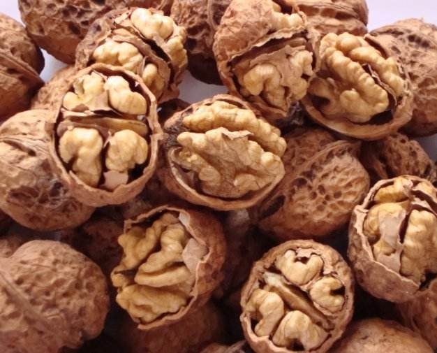 补大脑 可将核桃仁加冰糖捣成“核桃泥”,密藏在瓷缸内,每次取两匙,用开水冲和,冲时盅中有一层白色液体浮起,这就是“核桃奶”,腴美可口。