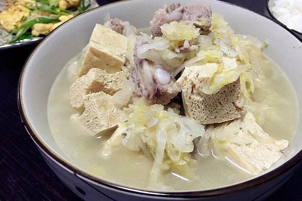 冻豆腐是北方人的发明,就是把豆腐冷冻以后再食用。冷冻后的豆腐发生了物理变化(豆腐的内部有无数的小孔,这些小孔大小不一,有的互相连通,有的闭合成一个个小“容器”,这些小孔里面都充满了水分。我们知道,水有一种奇异的特性:在4℃时,它的密度最大,体积最小;到0℃时,结成了冰,它的体积不是缩小而是胀大了,比常温时水的体积要大10%左右。当豆腐的温度降到0℃以下时,里面的水分结成冰,原来的小孔便被冰撑大了,整块豆腐就被挤压成网络形状。等到冰融化成水从豆腐里跑掉以后,就留下了数不清的孔洞,使豆腐变得像泡沫塑料一样)。这样的豆腐吃上去的口感很有层次。冻豆腐放在荤汤里煮是非常好吃的,因为冻豆腐里的蜂窝组织吸收了汤汁。冻豆腐适合做火锅或者油炸后熘冻豆腐。平时想吃到也不是什么难事,放进冰箱就可以,大概等个一天冻豆腐就出现了。当然还有最重要的,凡是豆制品或多或少都有些涩味,煮前用开水氽一下基本就可以解决涩味了。